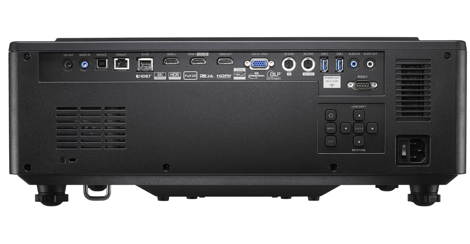 Wired remote x1,3D sync in x1, 3D sync out x1,audio in x1,audio out x1,USB B x1,USB A x2